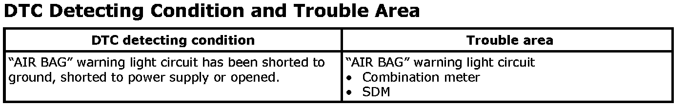 DTC B1014: "AIR BAG" Warning Light CircuitWiring Diagram