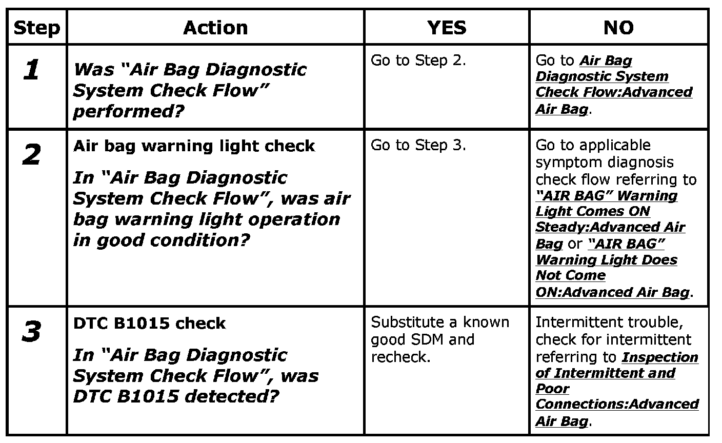 - Repeat Air Bag Diagnostic System Check:Advanced Air Bag Air Bag Diagnostic System Check to confirm that the trouble has been corrected.