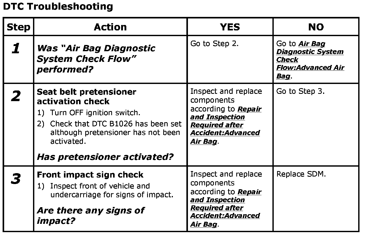 DTC B1026: Seat Belt Pretensioner Activation RecordStep 1-3: