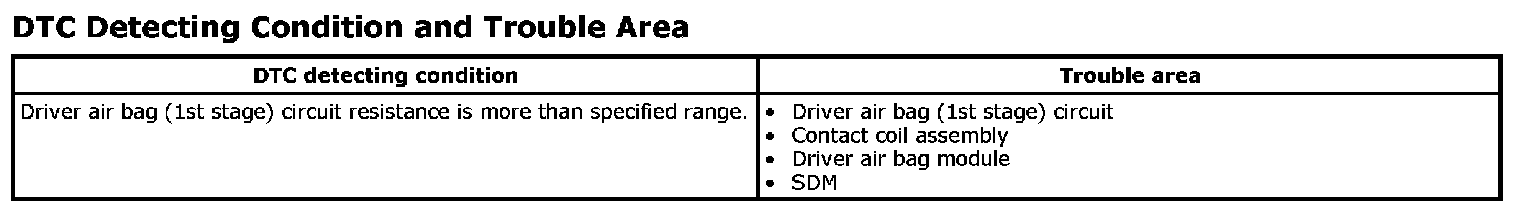 DTC B1031: Driver Air Bag (1st Stage) Circuit High ResistanceWiring Diagram