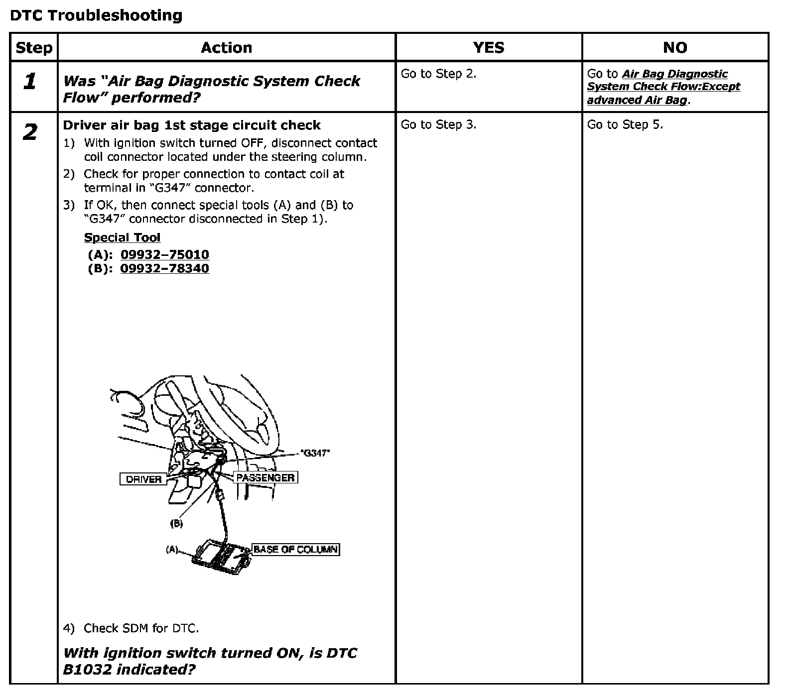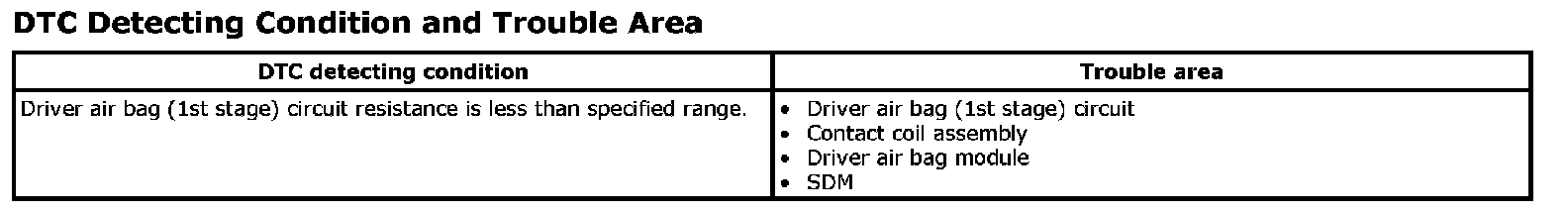 DTC B1032: Driver Air Bag (1st Stage) Circuit Low ResistanceWiring Diagram