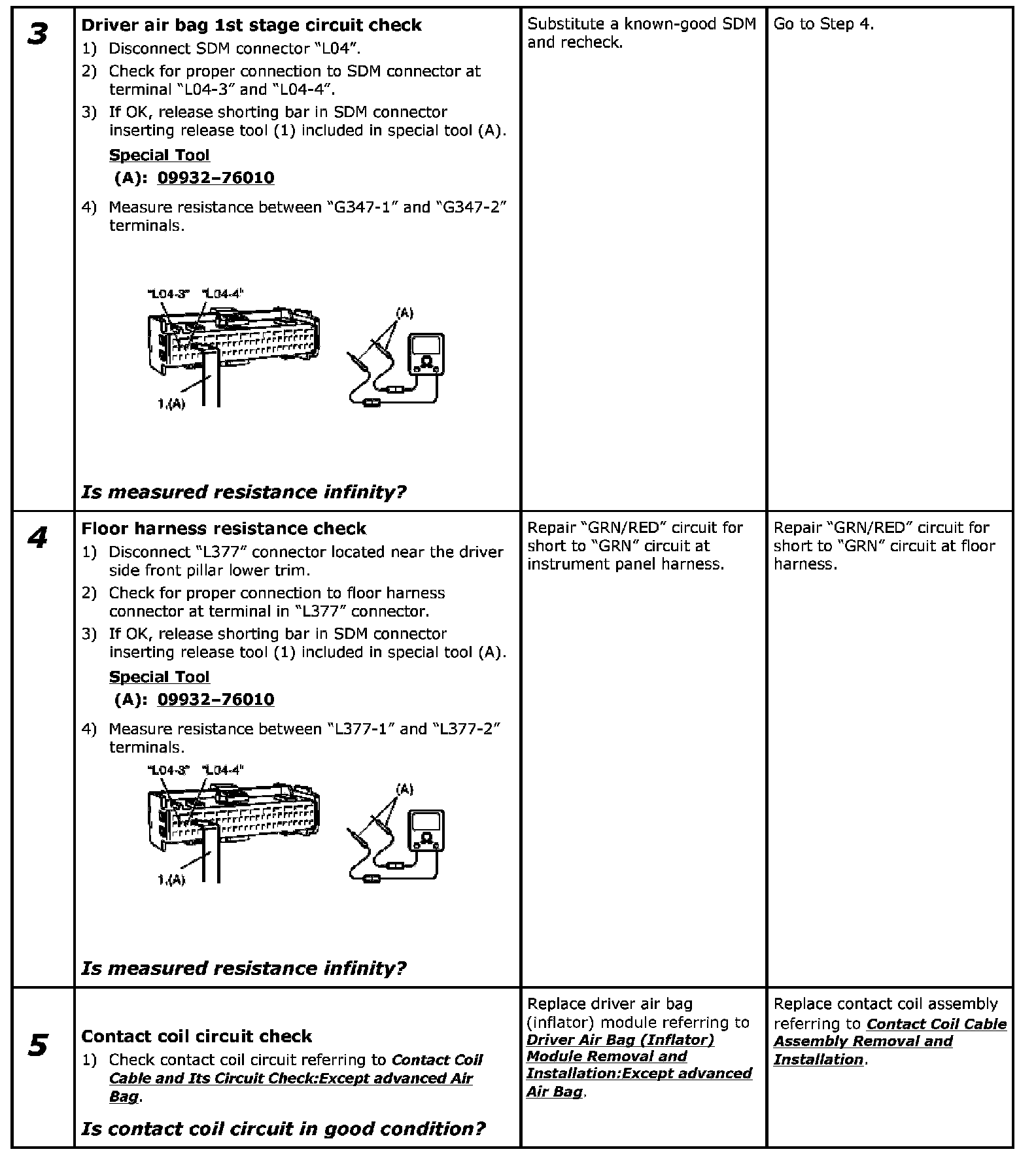 - Repeat Air Bag Diagnostic System Check:Except advanced Air Bag Air Bag Diagnostic System Check to confirm that the trouble has been corrected.