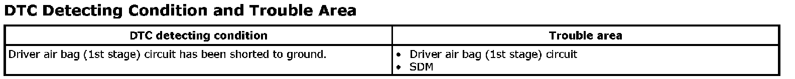 DTC B1033: Driver Air Bag (1st Stage) Circuit Shorted to GroundWiring Diagram