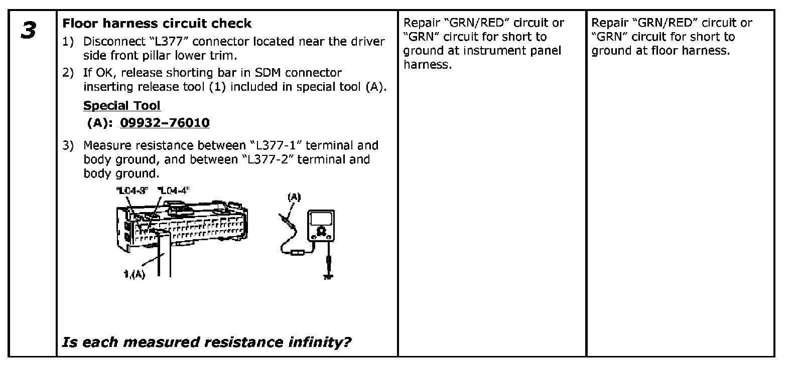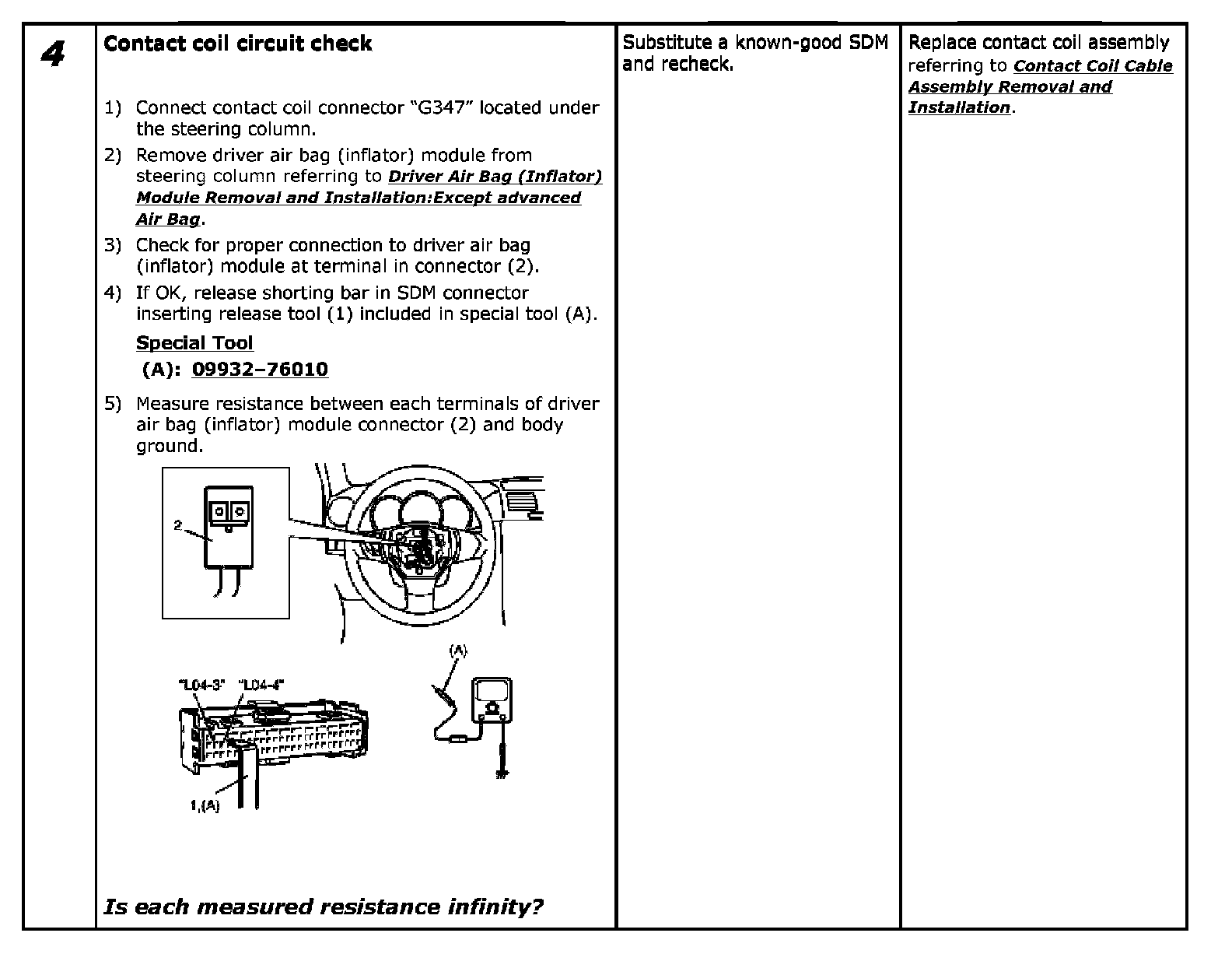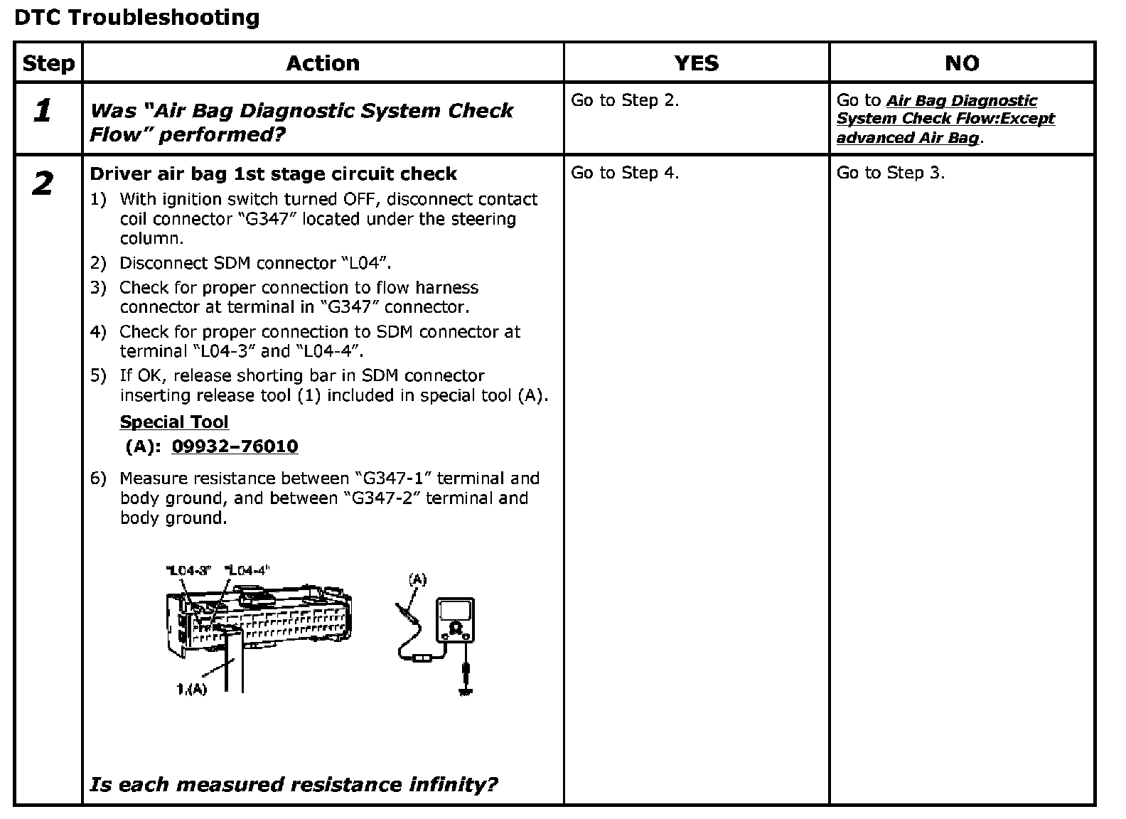 - Repeat Air Bag Diagnostic System Check:Except advanced Air Bag Air Bag Diagnostic System Check to confirm that the trouble has been corrected.