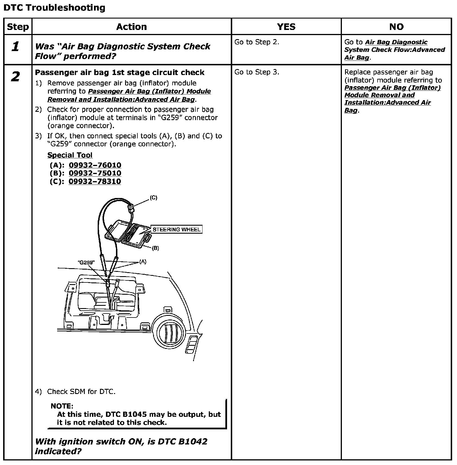 DTC B1042: Passenger Air Bag (1st Stage) Circuit Low ResistanceWiring Diagram