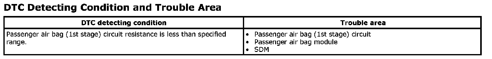 DTC B1042: Passenger Air Bag (1st Stage) Circuit Low ResistanceWiring Diagram