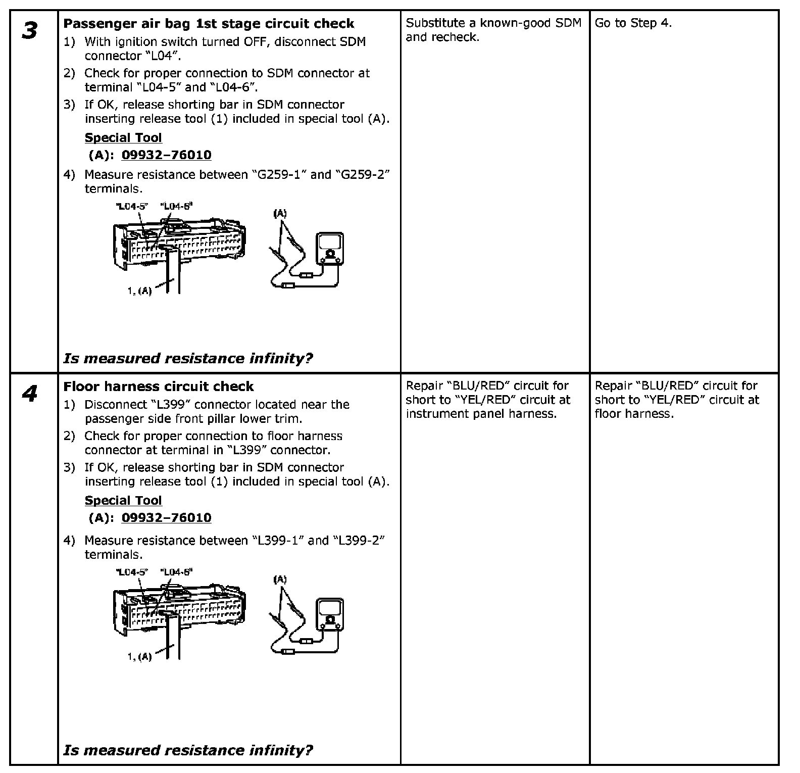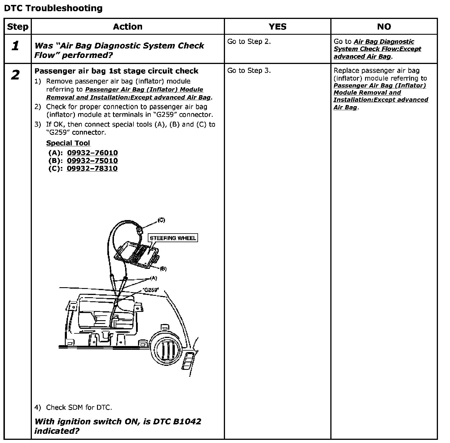 - Repeat Air Bag Diagnostic System Check:Except advanced Air Bag Air Bag Diagnostic System Check to confirm that the trouble has been corrected.