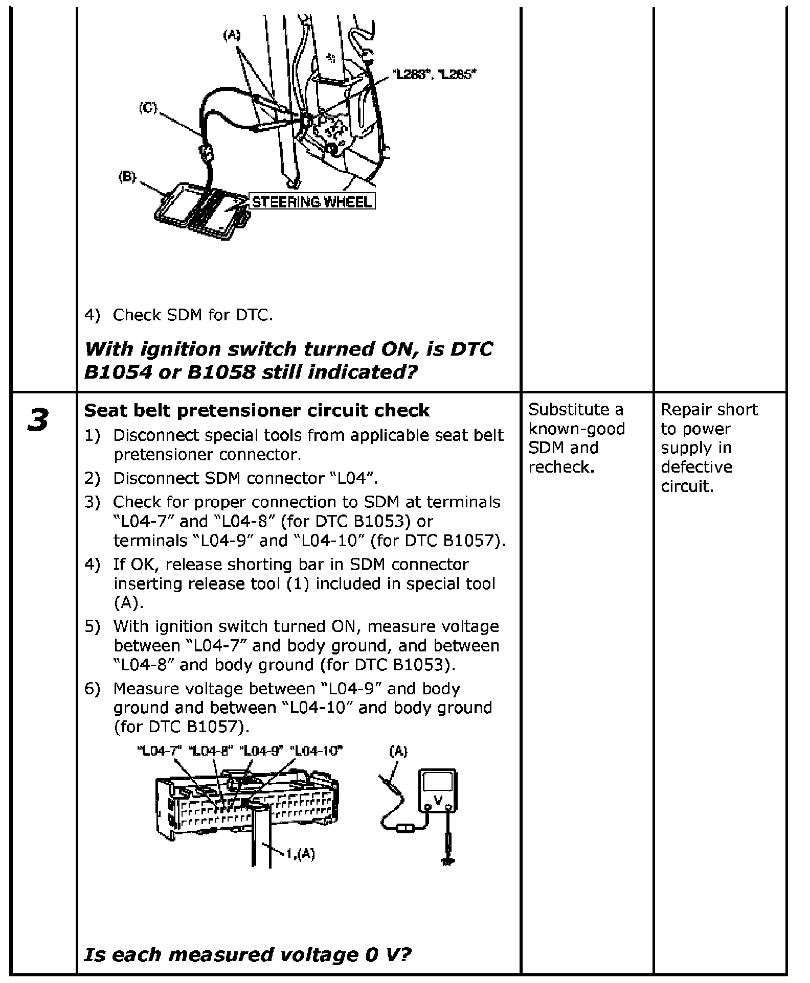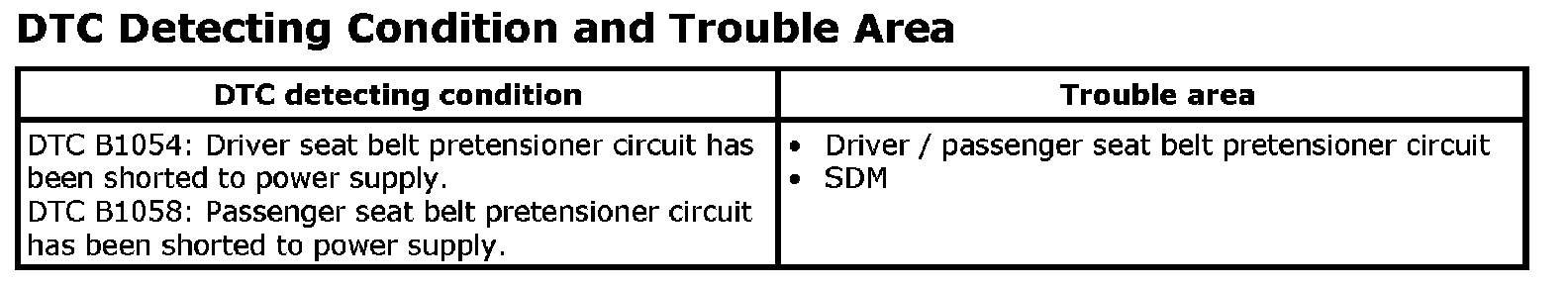 DTC B1054 / B1058: Seat Belt Pretensioner Circuit Shorted to Power Supply(DTC B1054: Driver Seat Belt Pretensioner Circuit Shorted to Power Supply)