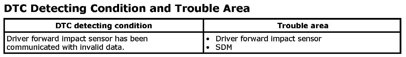 DTC B1072: Driver Forward Impact-Sensor Communication Data InvalidDTC Detecting Condition and Trouble Area