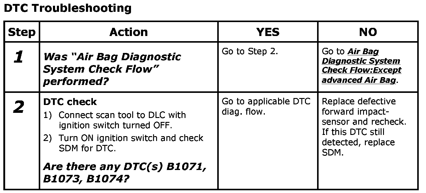 - Repeat Air Bag Diagnostic System Check:Except advanced Air Bag Air Bag Diagnostic System Check to confirm that the trouble has been corrected.