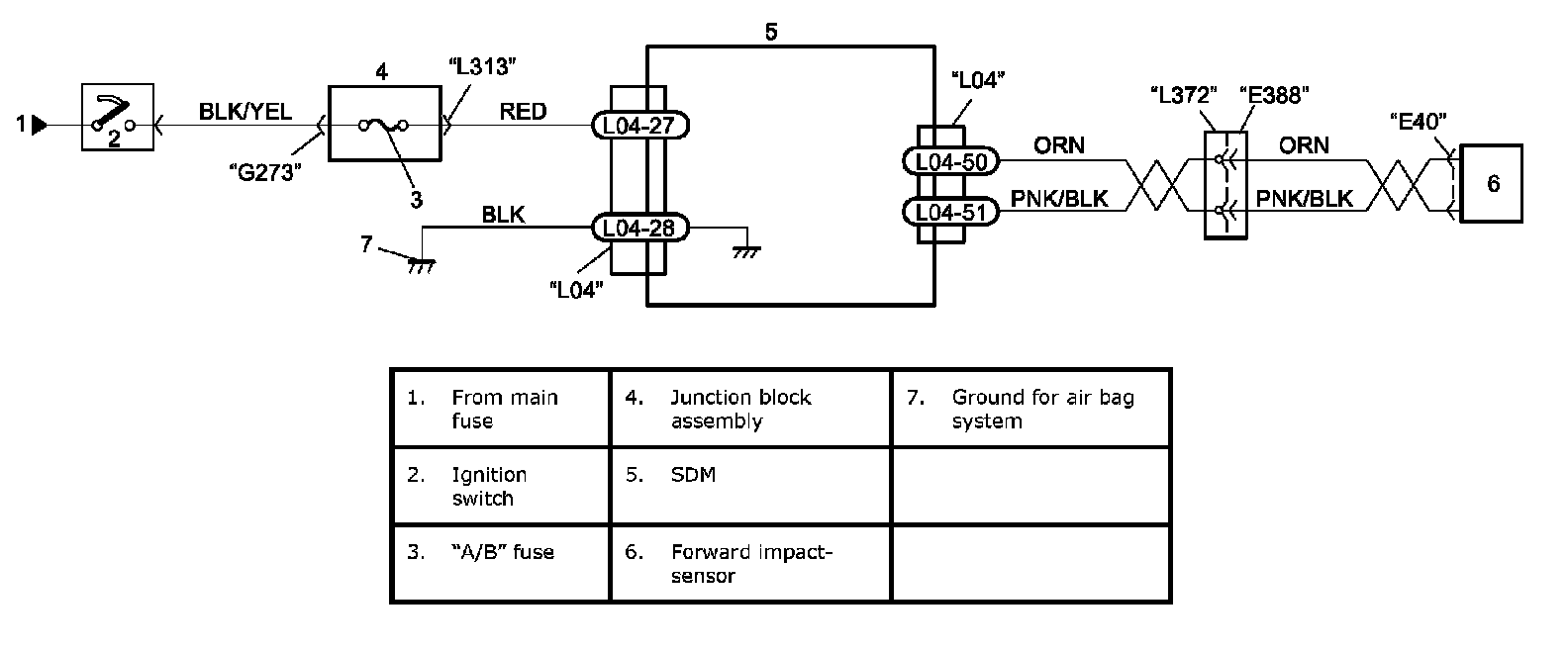 DTC B1073: Driver Forward Impact-Sensor Circuit Shorted to GroundWiring Diagram