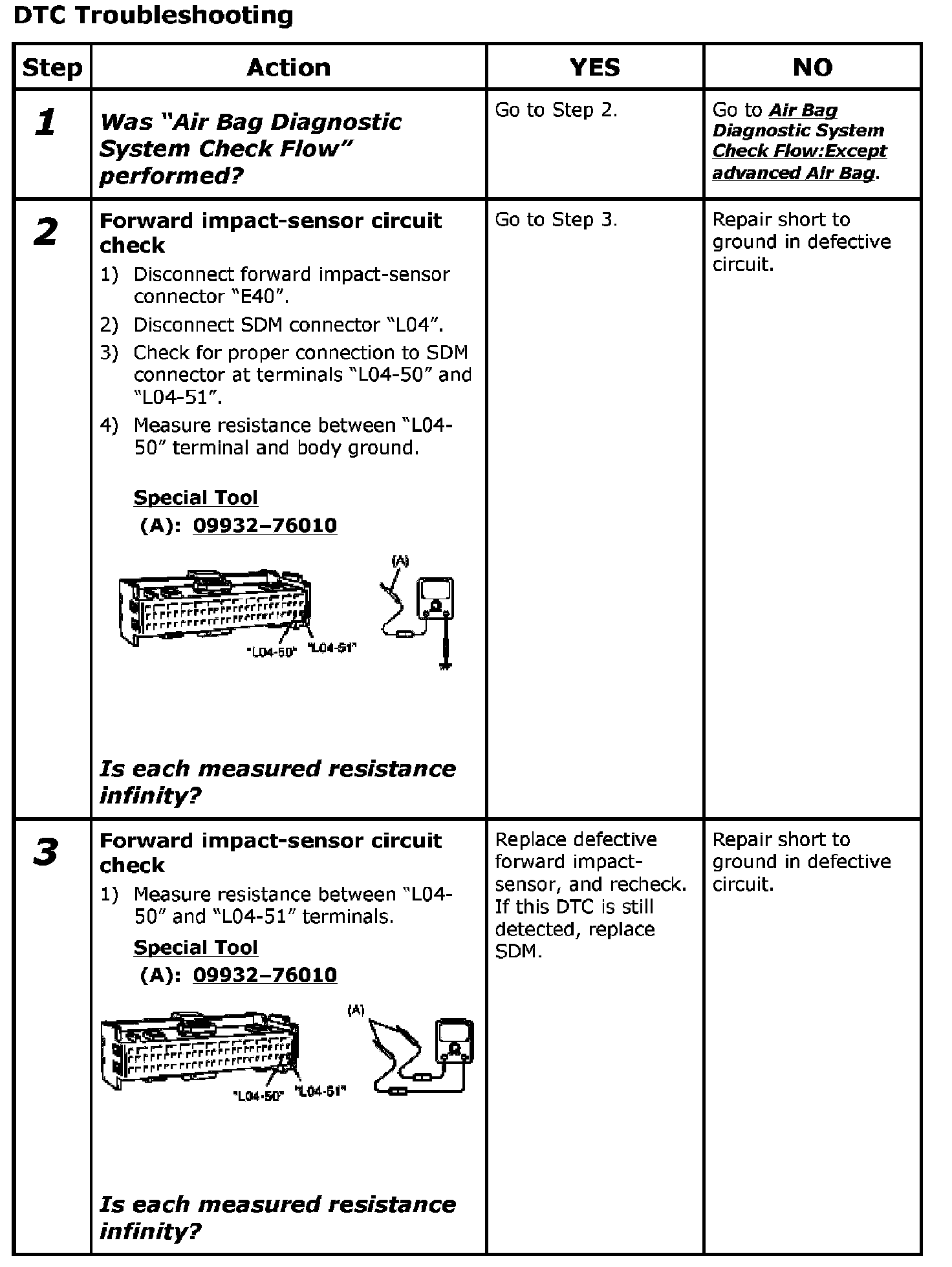 - Repeat Air Bag Diagnostic System Check:Except advanced Air Bag Air Bag Diagnostic System Check to confirm that the trouble has been corrected.
