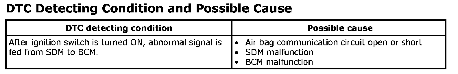 DTC Detecting Condition and Possible Cause