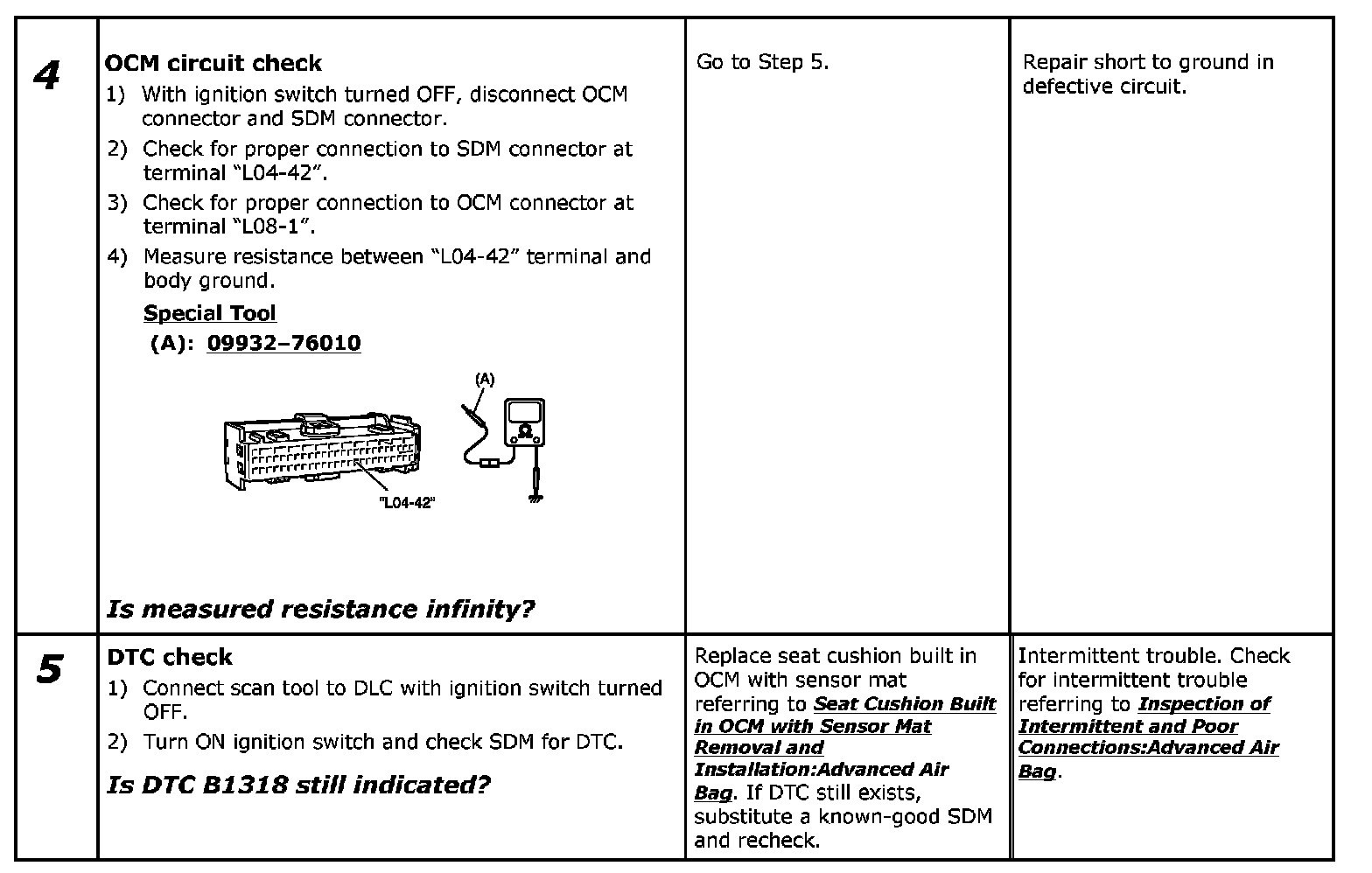- Repeat Air Bag Diagnostic System Check:Advanced Air Bag Air Bag Diagnostic System Check to confirm that the trouble has been corrected.