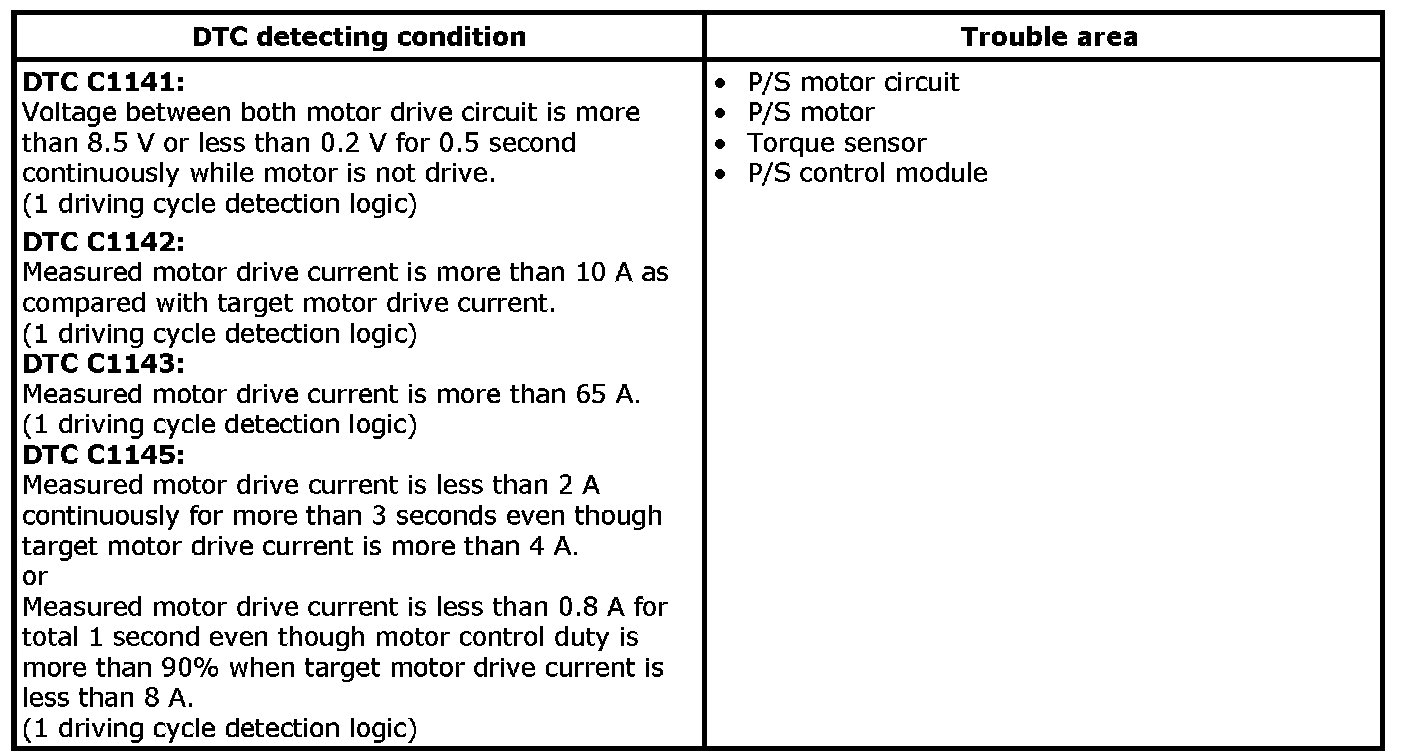 DTC C1141 / C1142 / C1143 / C1145: Motor Circuit Failure(DTC C1141: P/S Motor Circuit Voltage)
