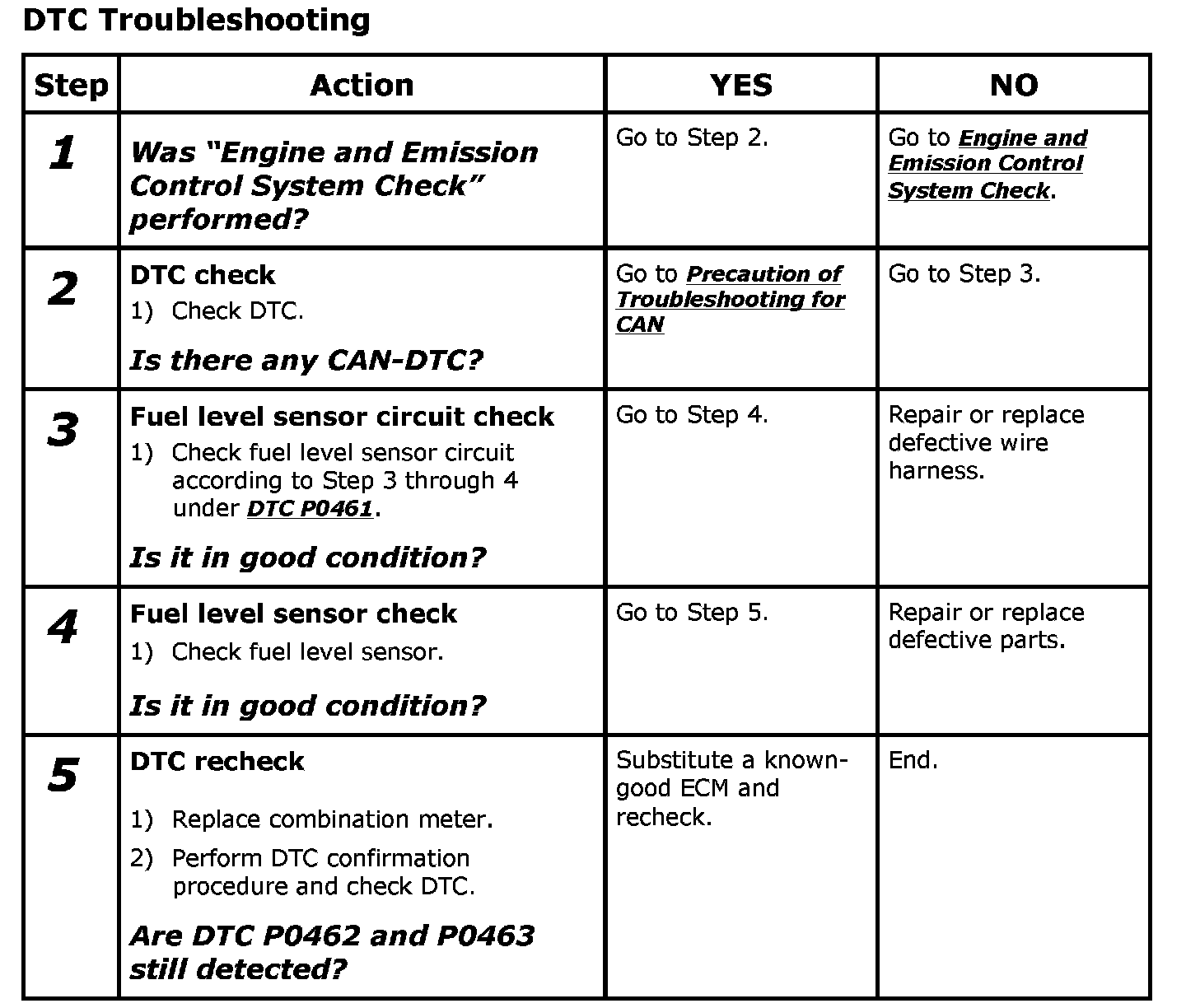 DTC P0462 / P0463DTC Detecting Condition and Trouble Area