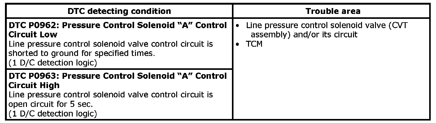 DTC P0962 / P0963DTC Detecting Condition and Trouble Area