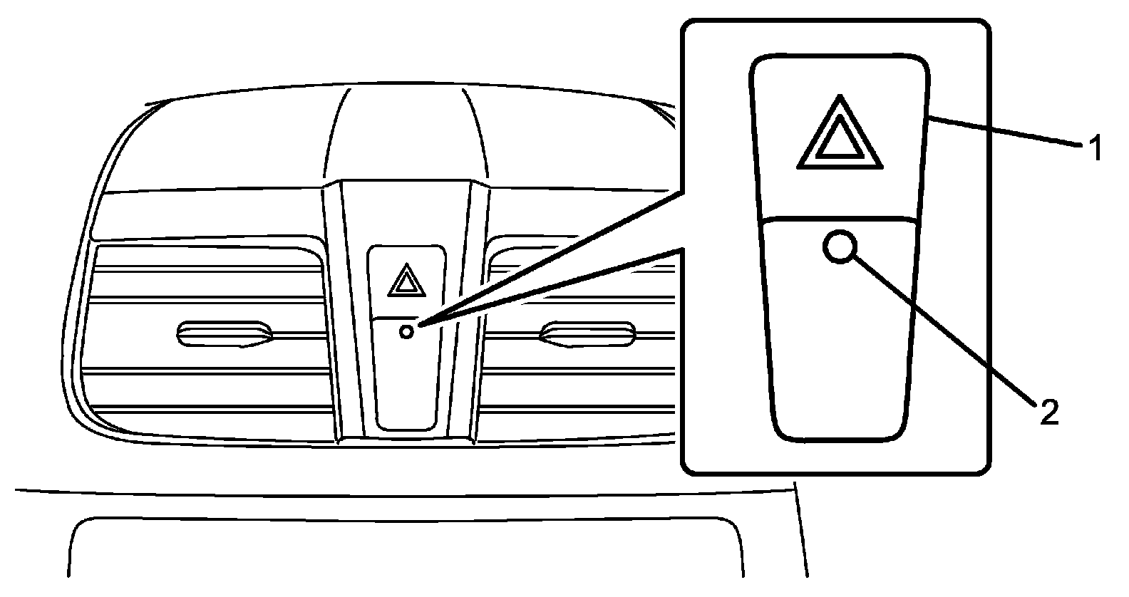 Theft Deterrent Light DescriptionThe hazard warning switch (1) of this vehicle includes a theft deterrent light (2) for the theft preventive purpose. The BCM makes the theft deterrent light flash at certain intervals after the ignition switch is turned off until it is turned on again. Also, DTCs stored in BCM can be checked by reading the flashing patterns of the theft deterrent light when diagnosing troubles.