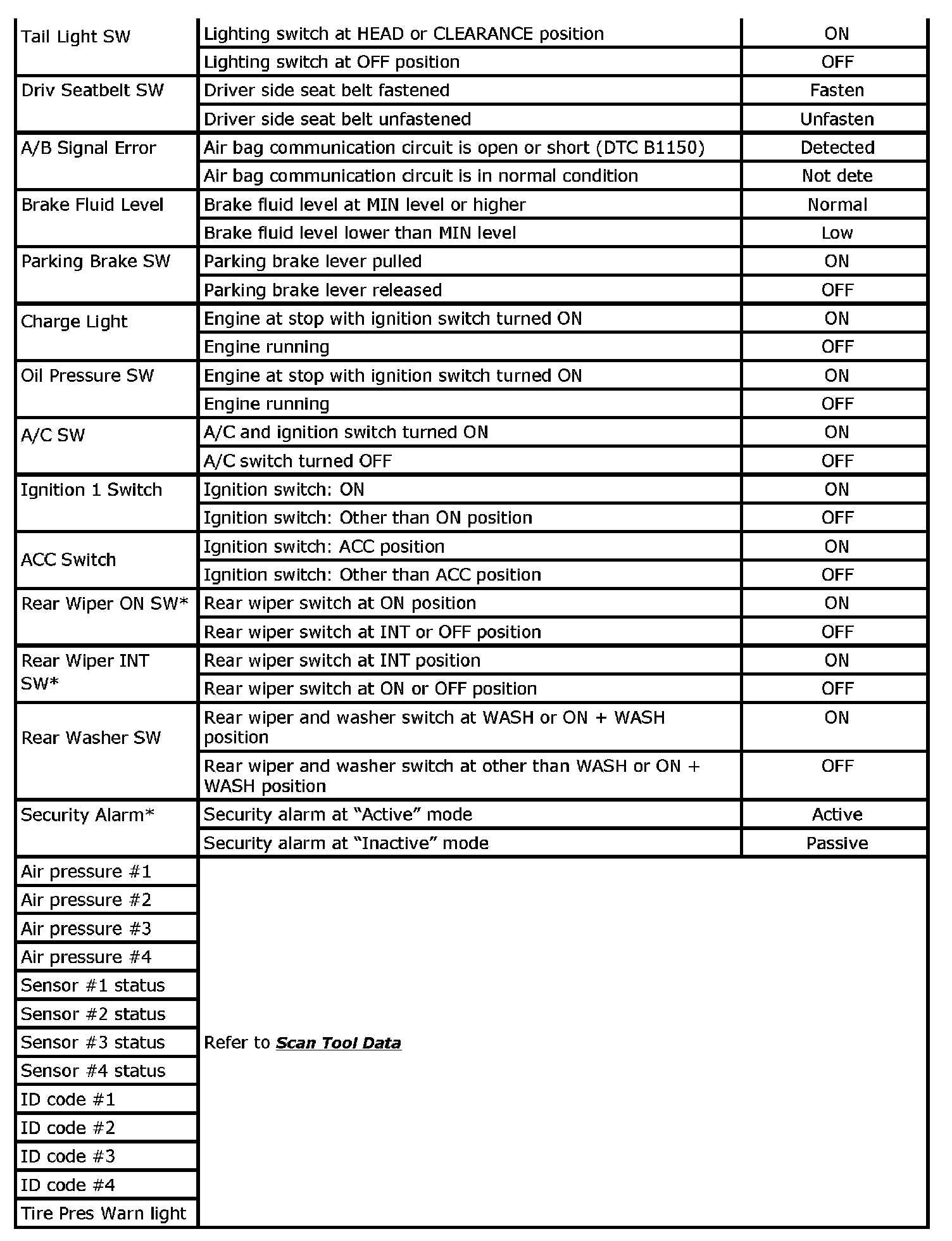 Parking Brake SW (Parking brake switch) (ON / OFF)