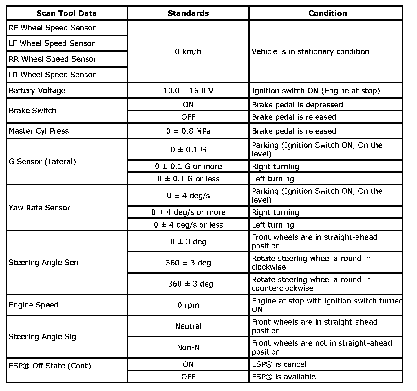 Scan Tool DataESP(R) Control Module