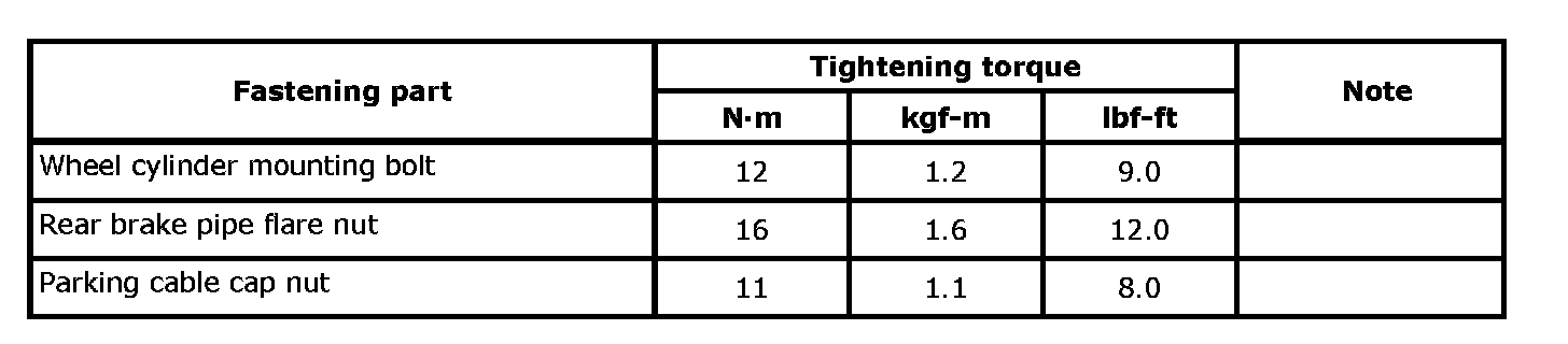 The specified tightening torque is described in the following. Rear Drum Brake Components: Drum