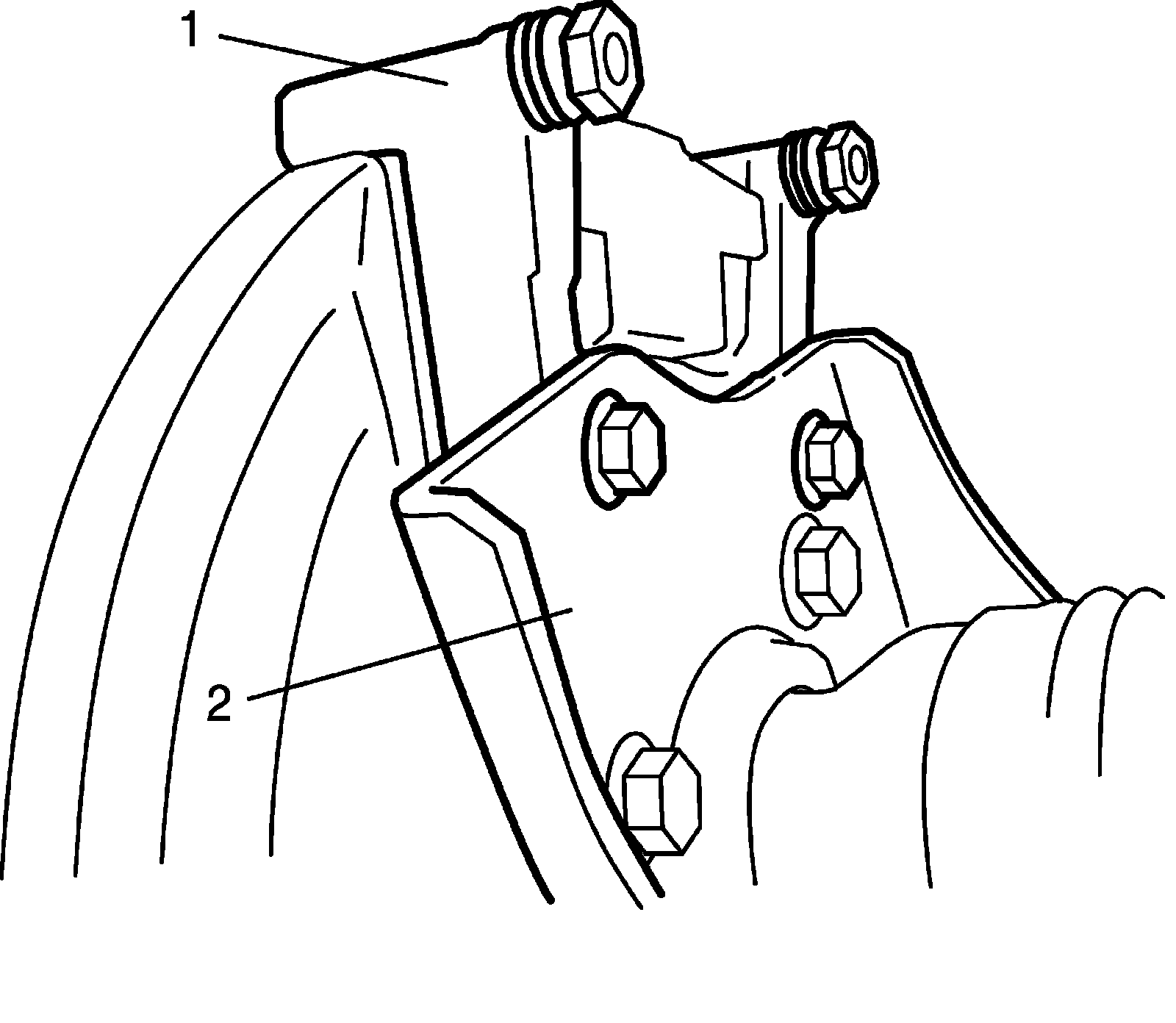 1) Install brake caliper carrier (1) to rear axle (2).