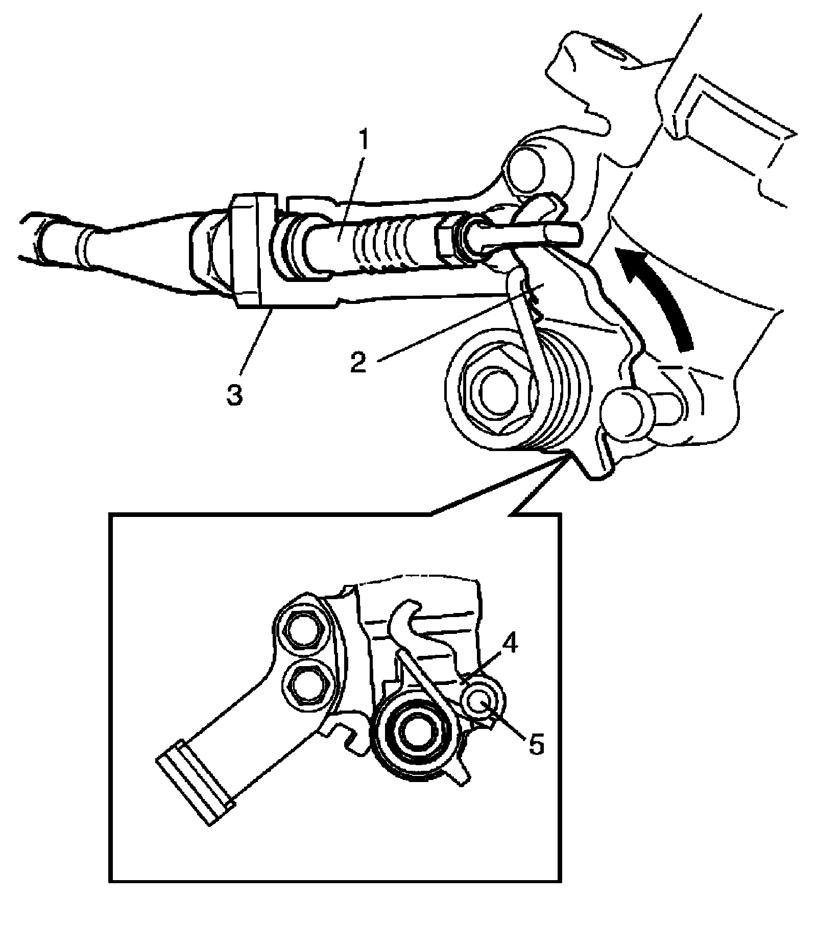 Make sure that lever (4) contacts pin (5).