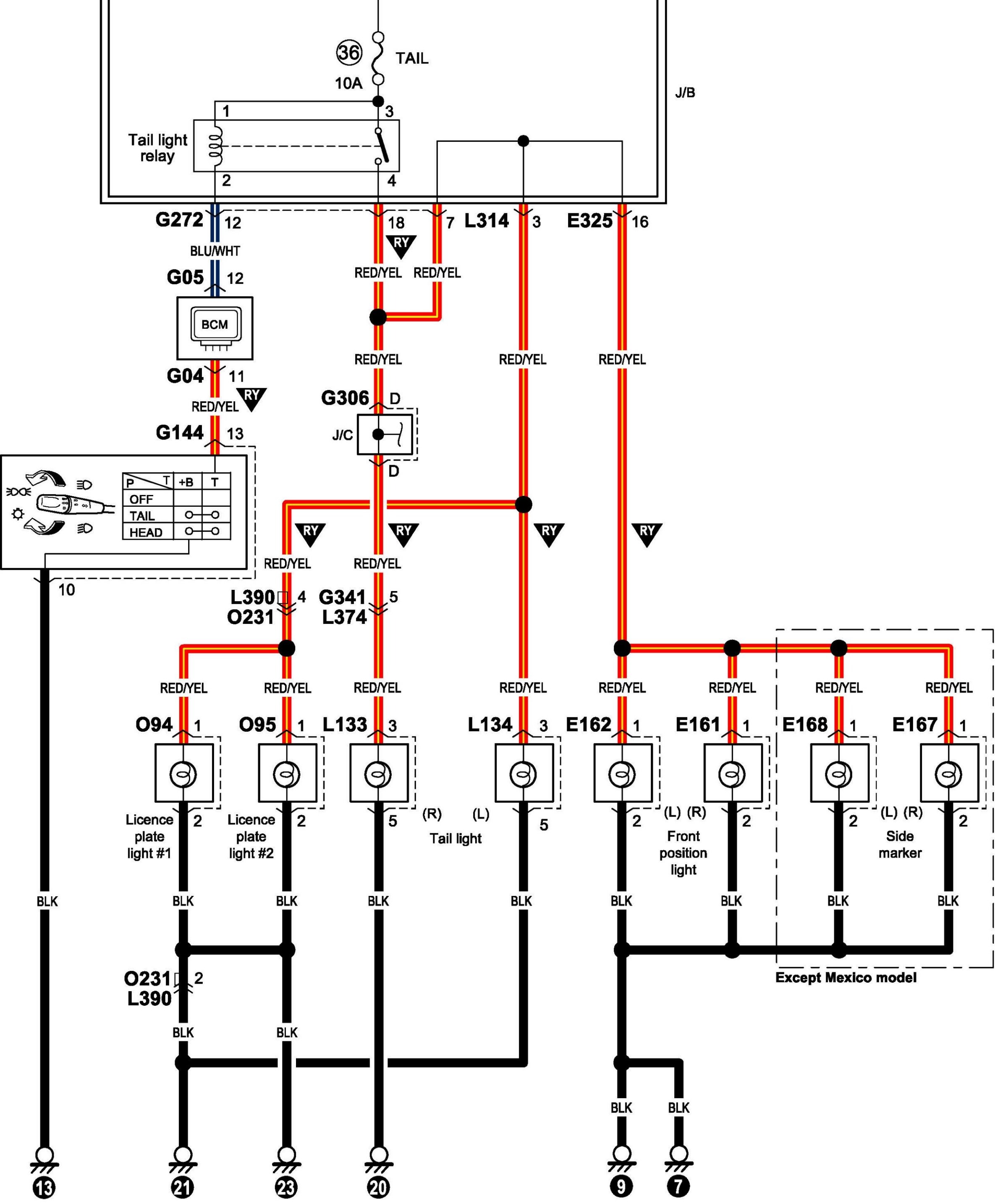 Position, Tail and Licence Plate Light System Circuit Diagram (Hatchback)Position, Tail And License Plate Light System Circuit Diagram (Hatchback):