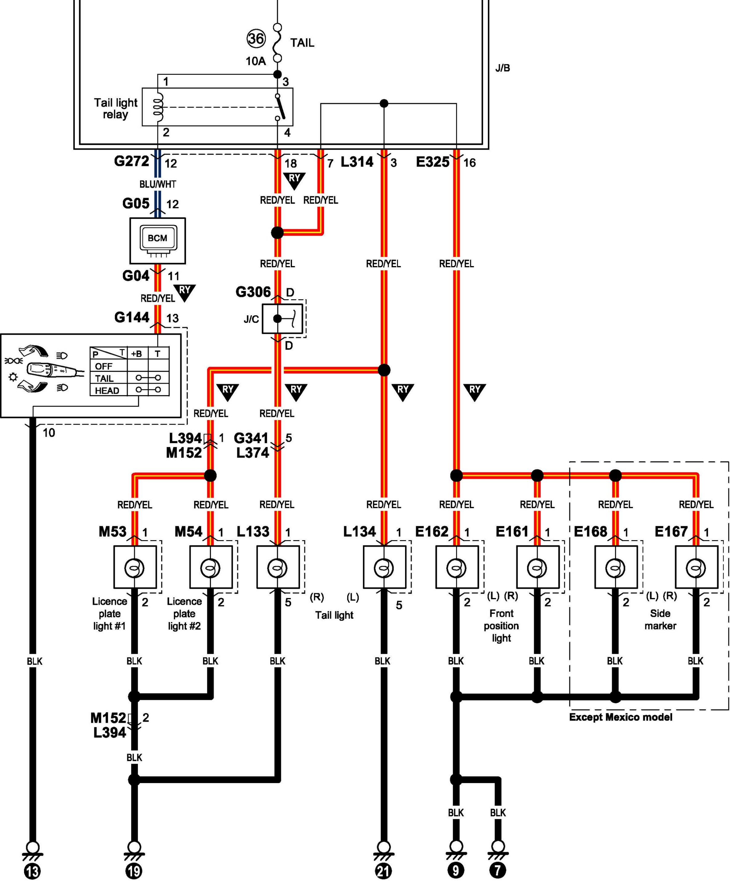 Position, Tail and Licence Plate Light System Circuit Diagram (Sedan)Position, Tail And License Plate Light System Circuit Diagram (Sedan):