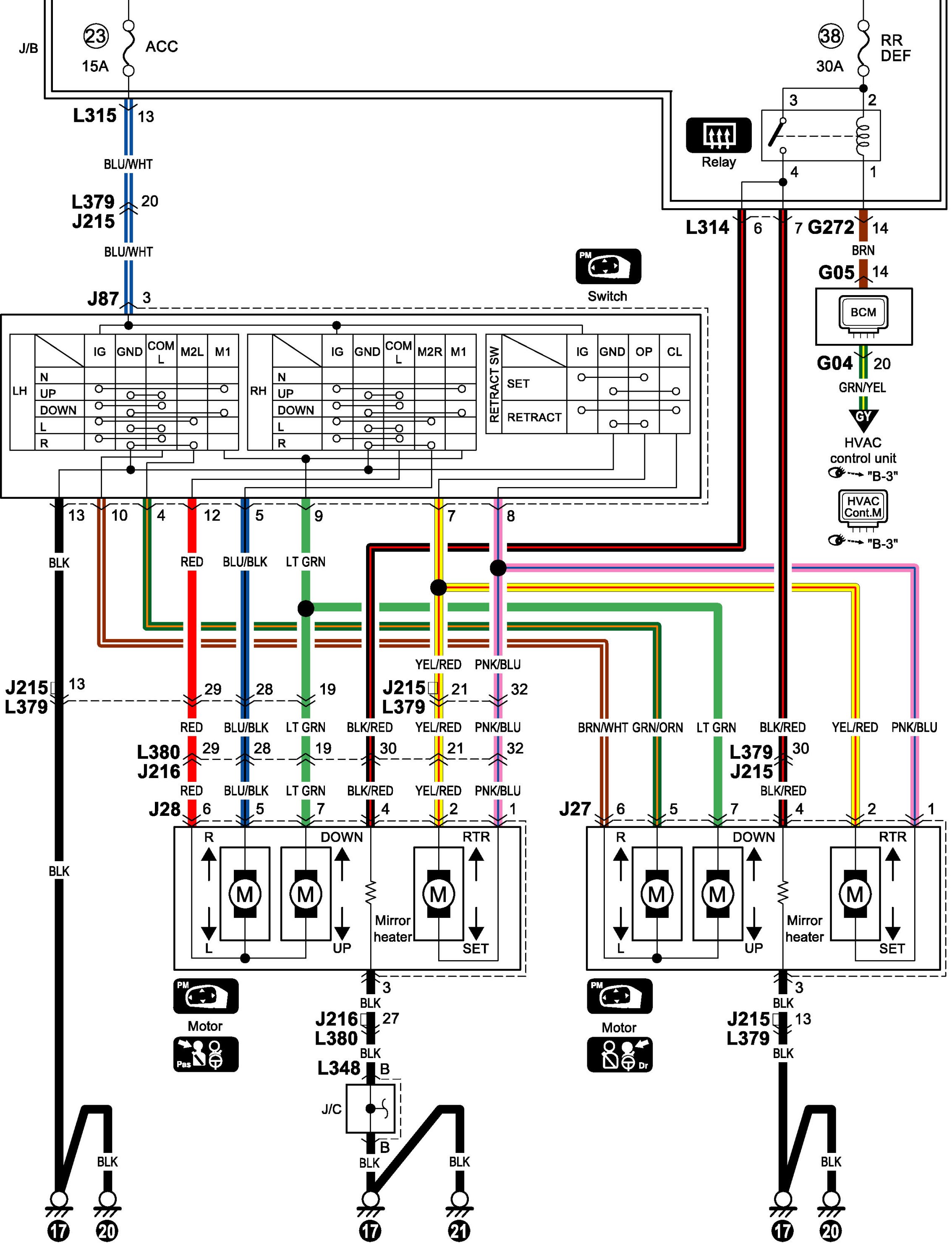 Power Mirror Circuit Diagram (Hatchback)