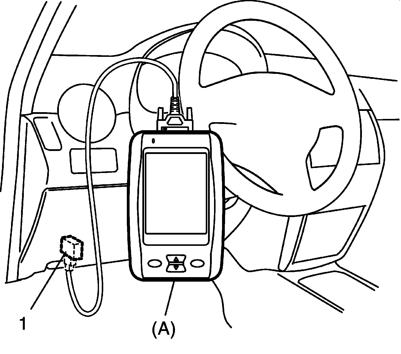 1) Connect scan tool to DLC (1) with ignition switch OFF.