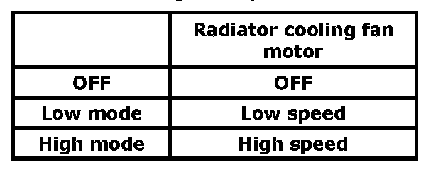 4) Check radiator cooling fan operation at low and high modes.