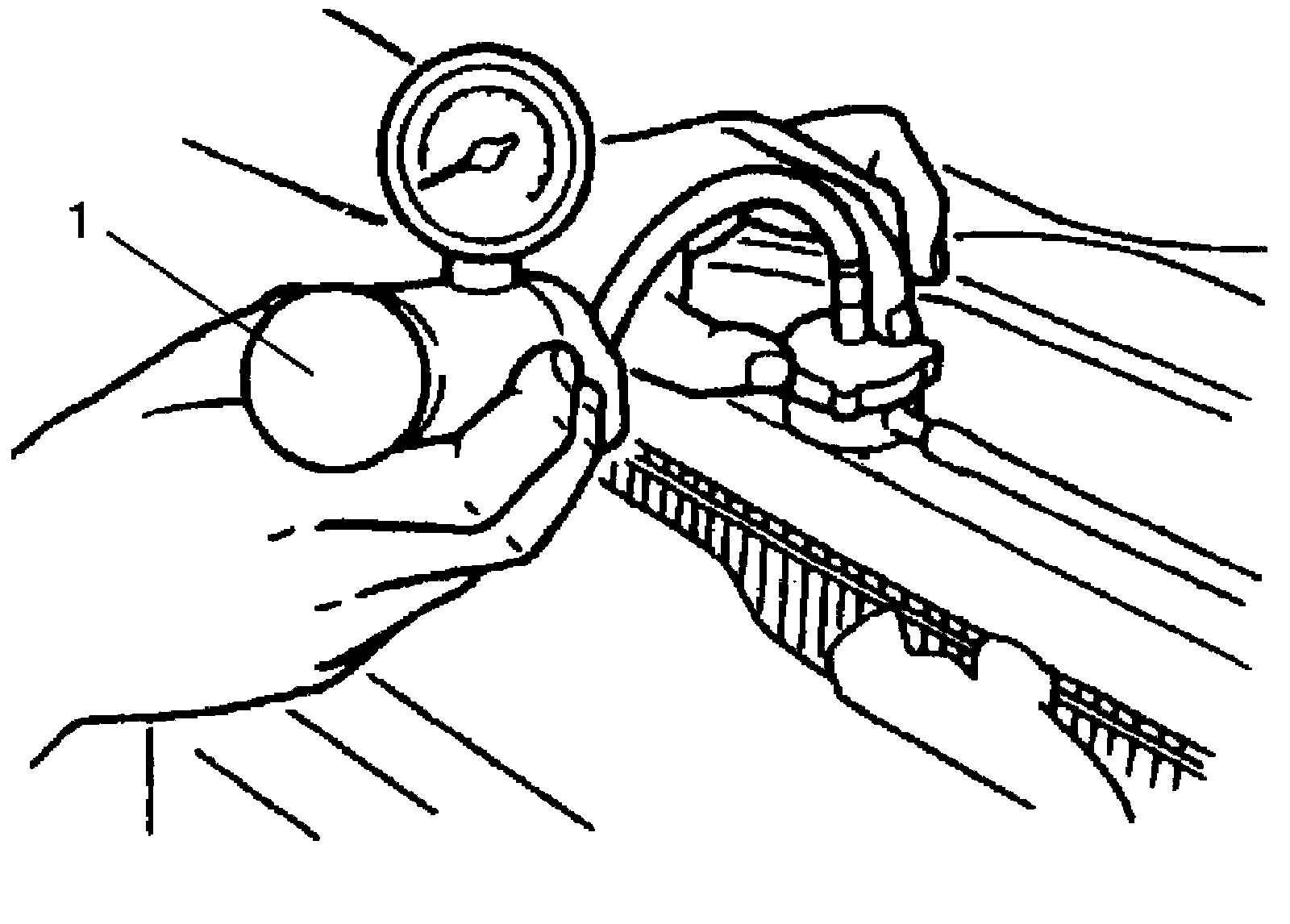 a) Attach pressure tester (1) to water filler, and then apply specified pressure to cooling system.