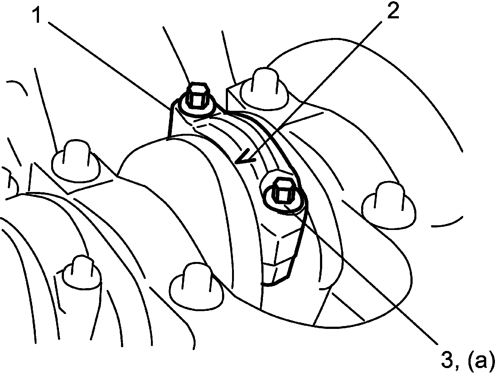 ^ Tighten connecting rod bearing cap bolt (3) gradually.