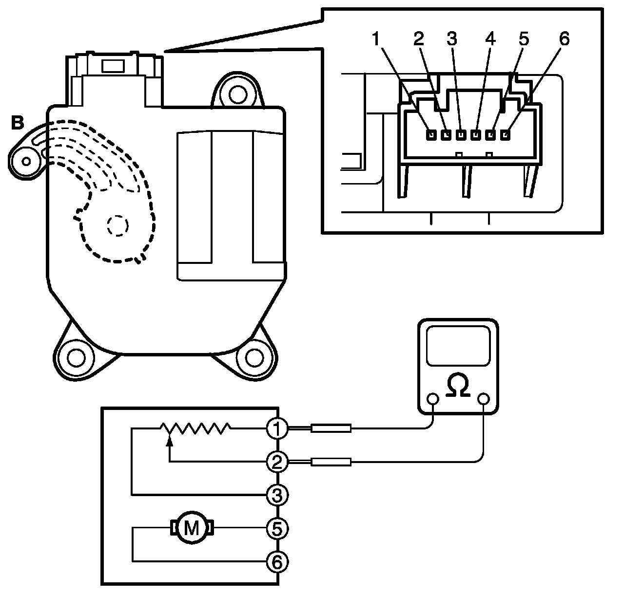 13. Measure resistance between terminal "1" and "2".