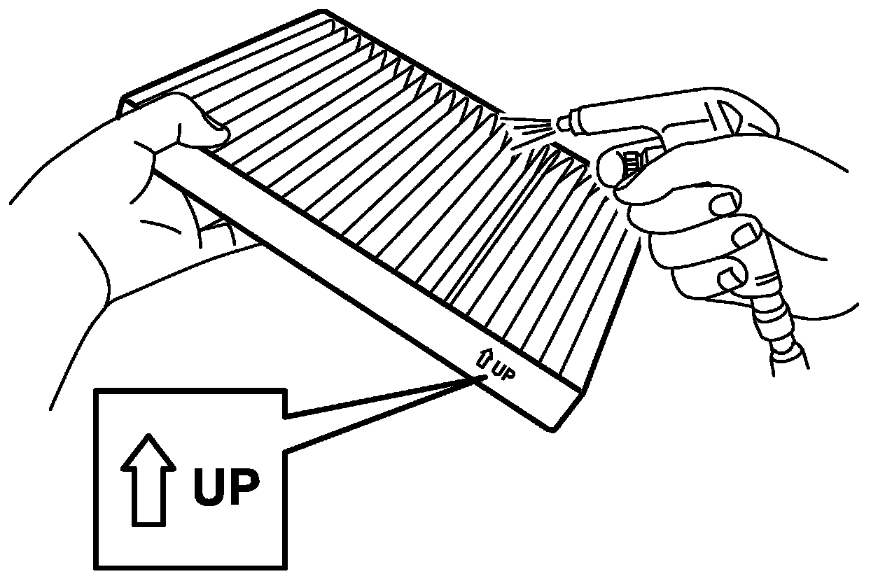 HVAC Air Filter Inspection (If Equipped)Check that filter is not excessively dirty, damage or oily, clean filter with compressed air from air outlet side of filter. If abnormality is found, replace filter with new one.