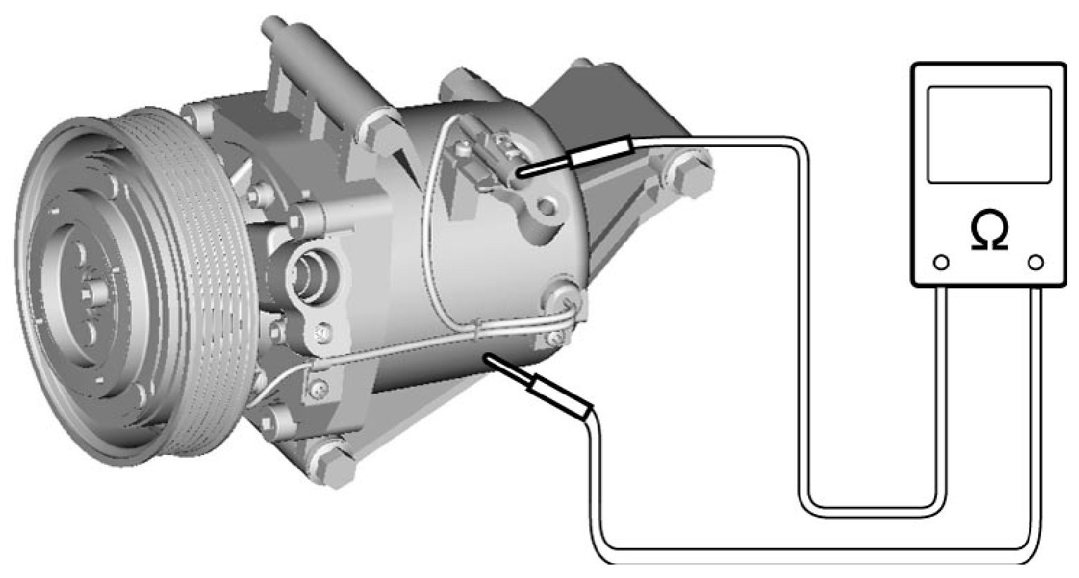 - Measure magnet clutch coil for resistance at 20 °C (68 °F). If the measured resistance does out of specification, replace magnet clutch assembly.