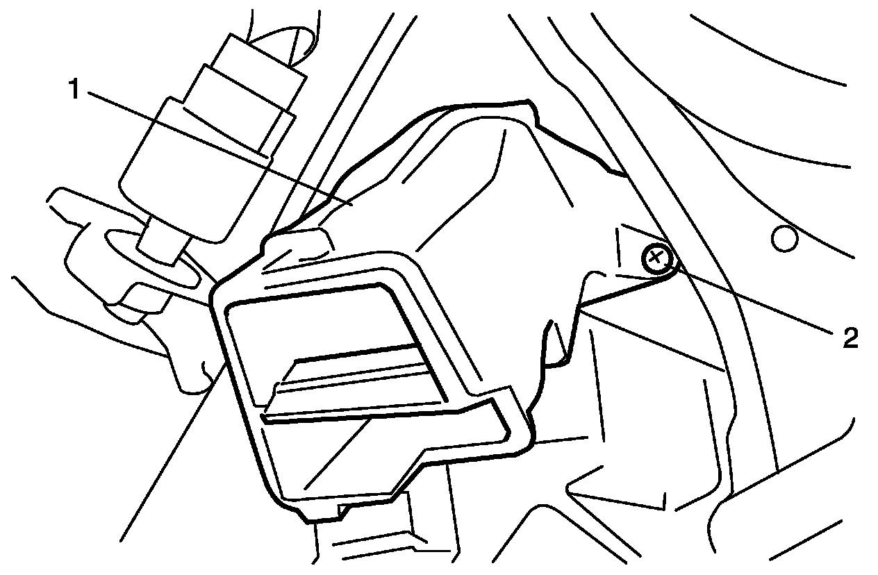 4. Remove driver side foot duct (1) from HVAC unit by removing screw (2).