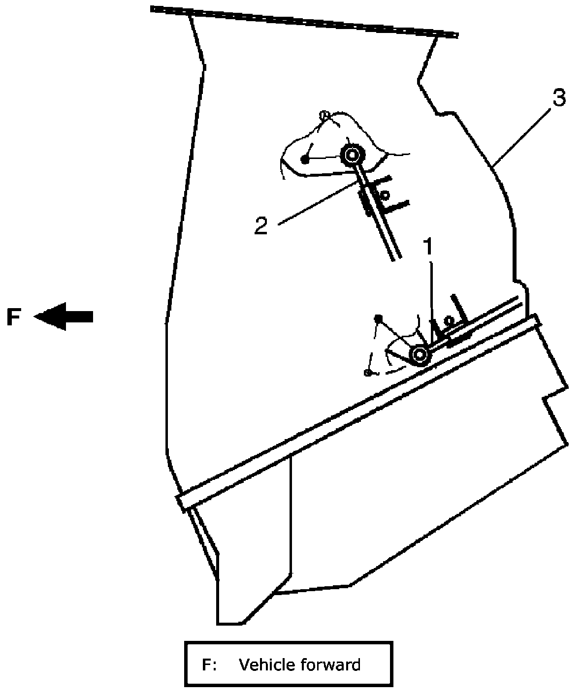 5. Disconnect temperature control cable (1) and air flow control cable (2) from HVAC unit (3).
