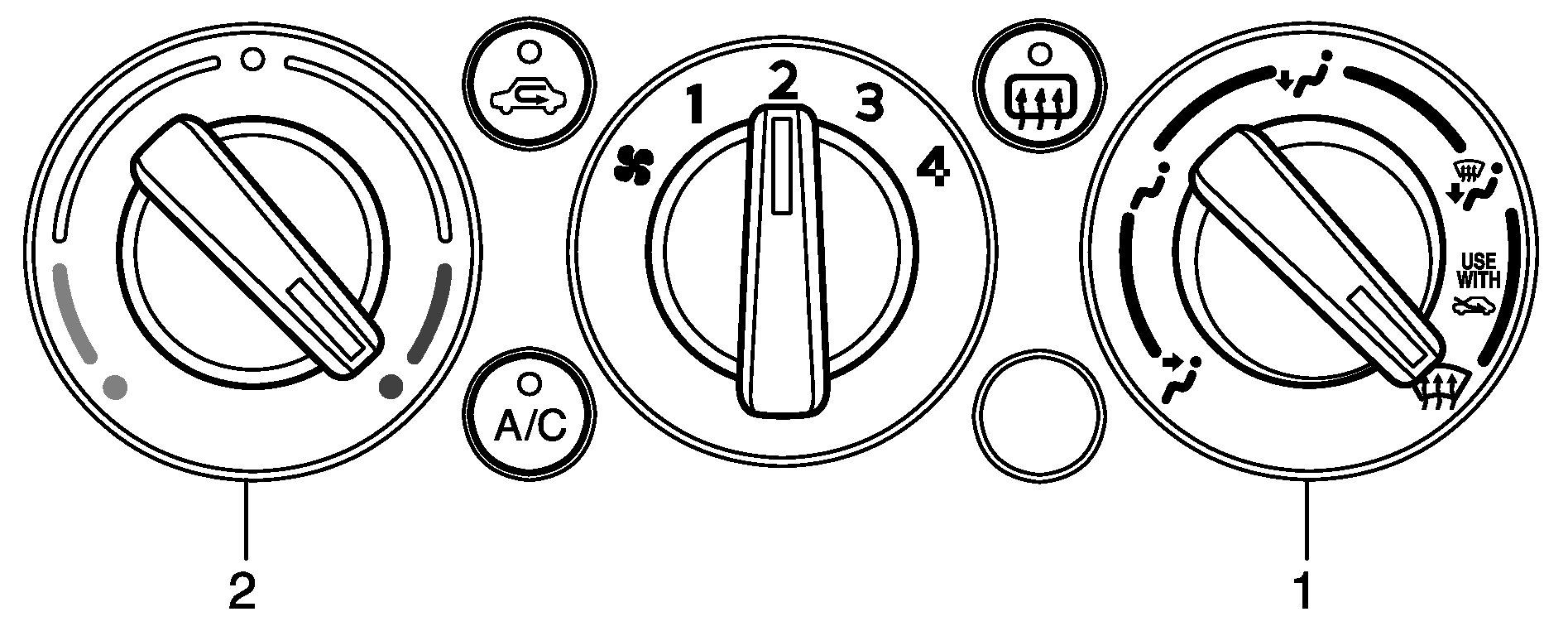 a. Set air flow selector (1) to "DEF" position and temperature selector (2) to "MAX HOT" position.