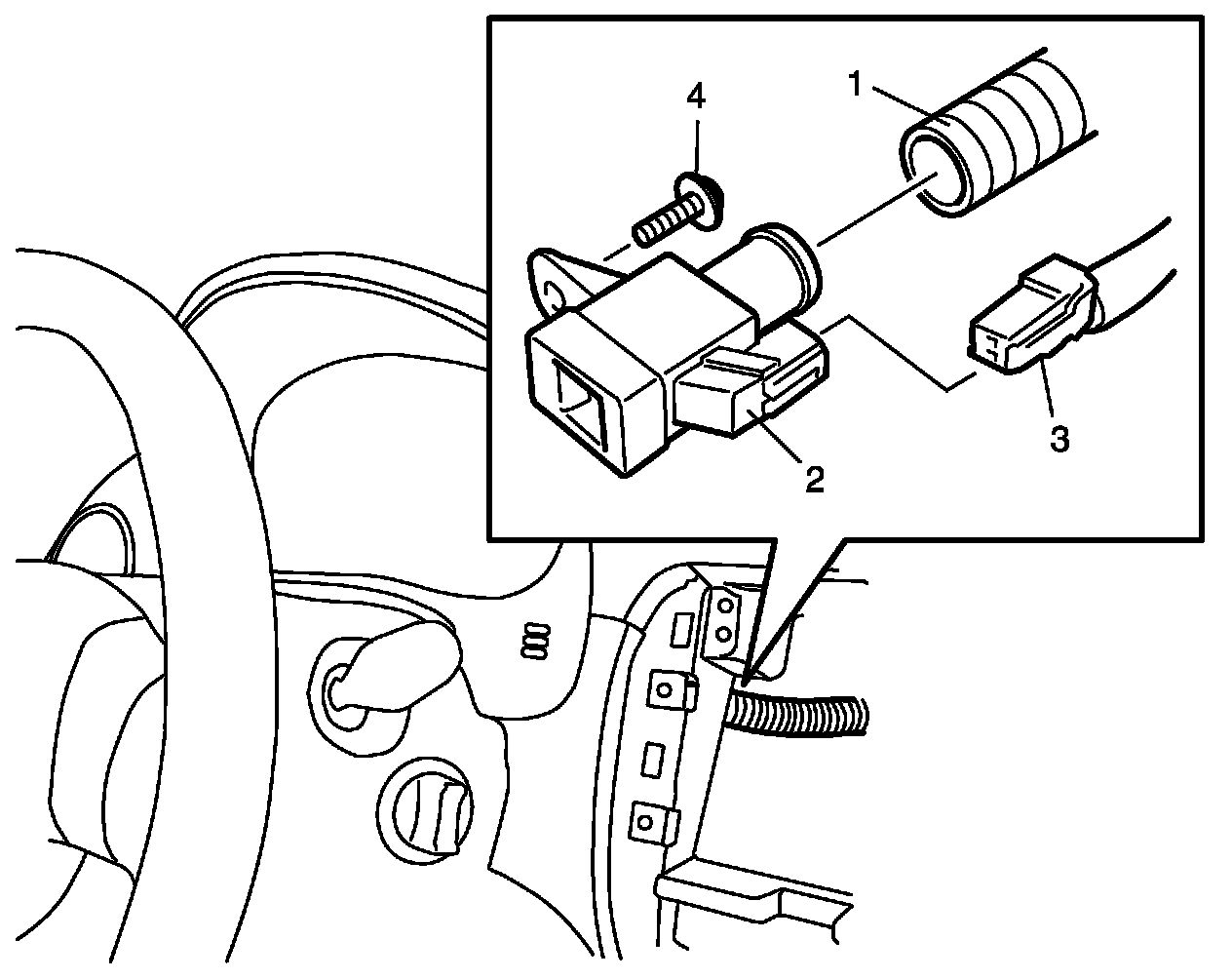 5. Remove inside air temperature sensor (2) from instrument panel by removing screw (4).