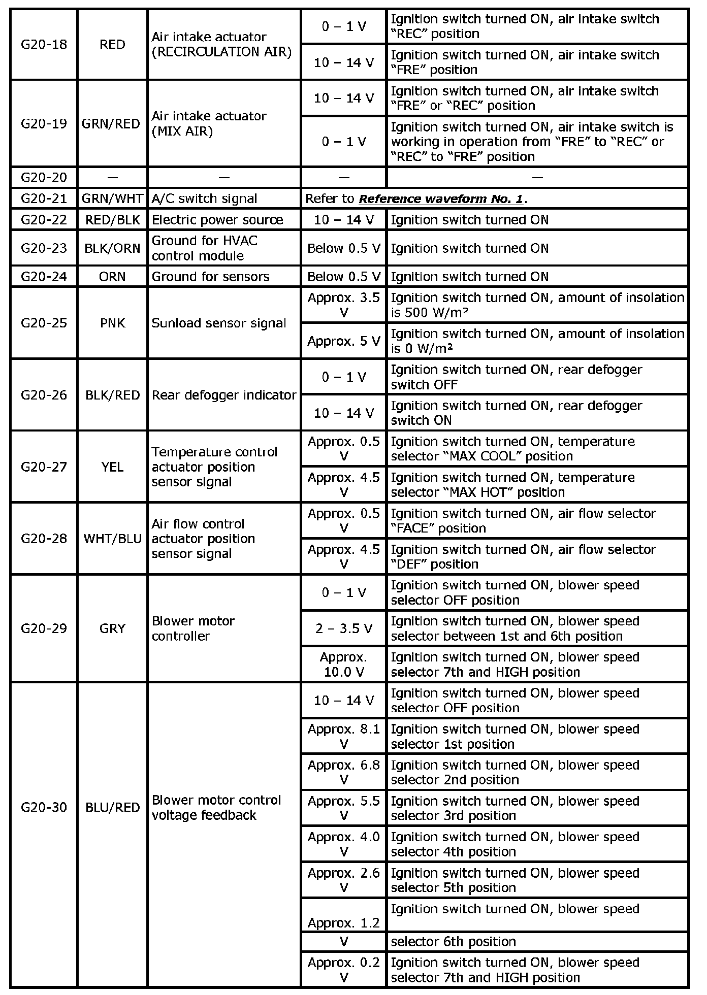 CAUTION: It is strictly prohibited to contact a voltmeter probe directly onto terminal of HVAC control module connector without wire harness connector connected.