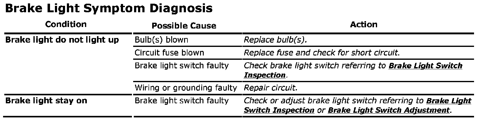 Brake Light Symptom Diagnosis