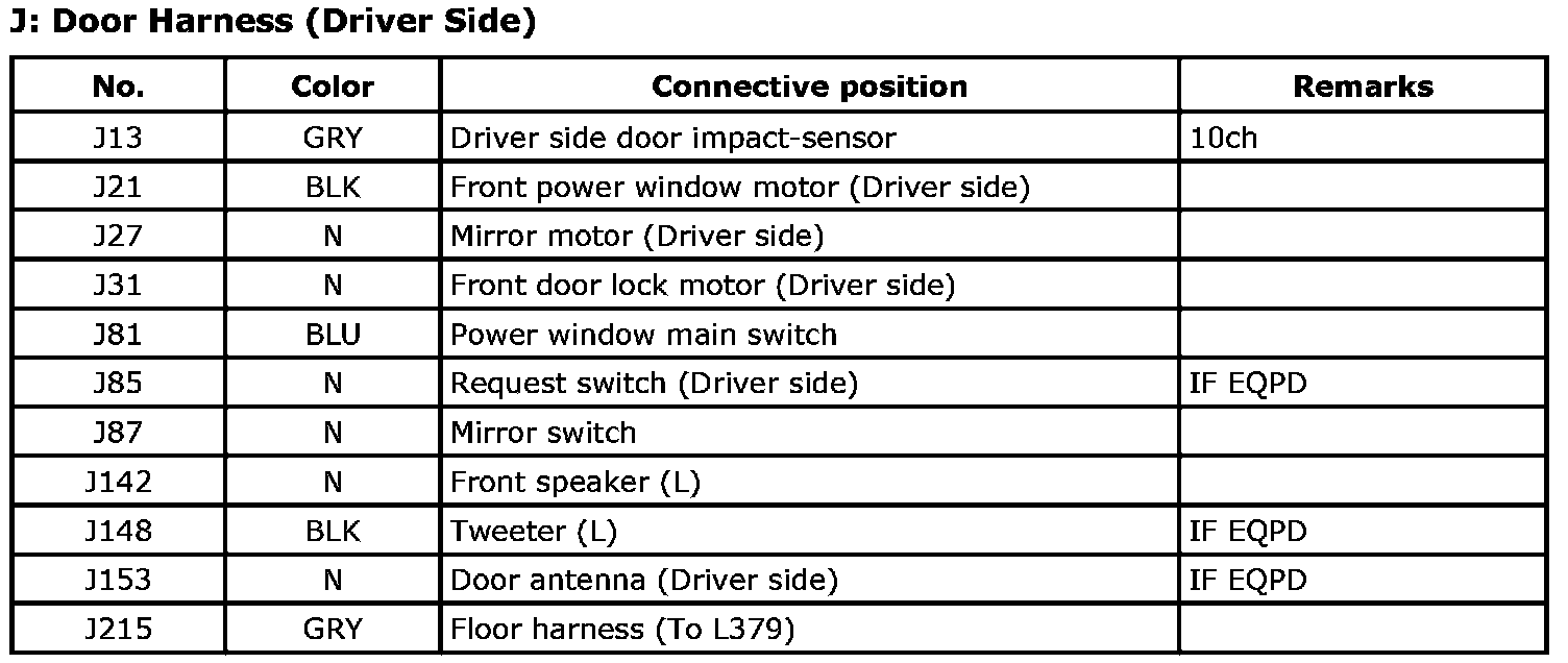 J: Door Harness (Driver Side) Index: