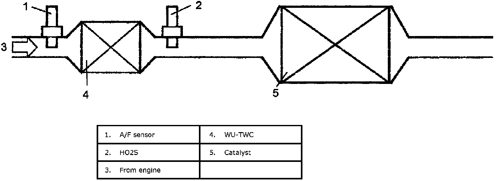 The system has A/F sensor and HO2S located upstream and downstream of WU-TWC as shown in figure.