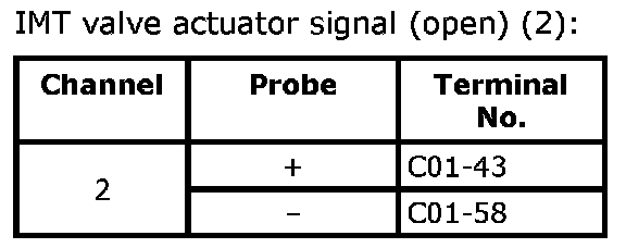 - IMT valve: OPEN --> CLOSE (using "Active Test of SUZUKI scan tool")