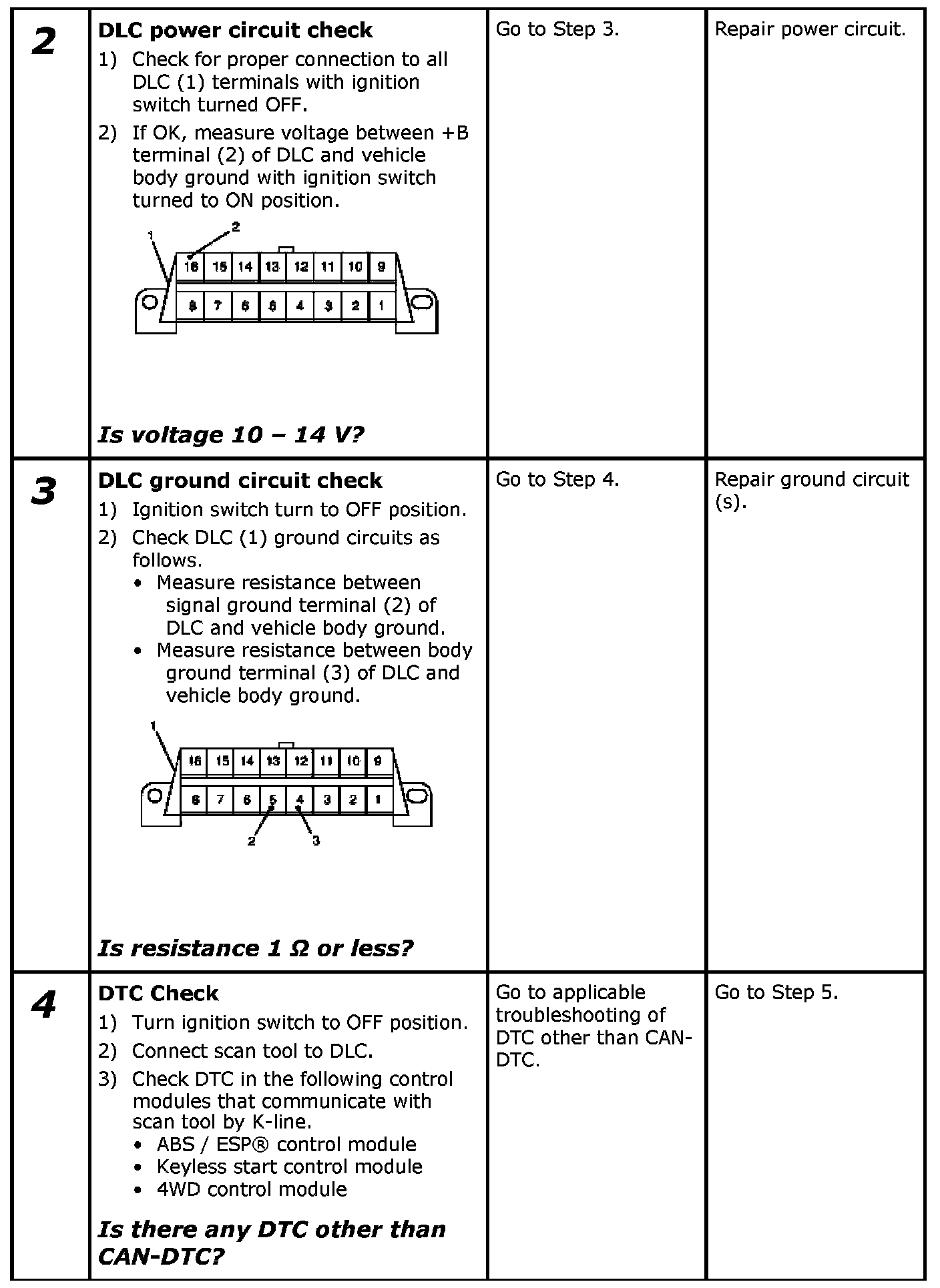 Troubleshooting for Communication Error with Scan Tool Using CANPerform this troubleshooting when it is not possible to communicate between scan tool and ECM / TCM.