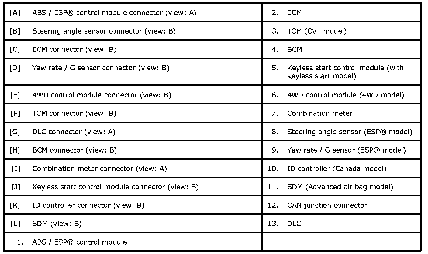 - When disconnecting each control module connector in this troubleshooting, various DTCs will be detected. Be sure to clear DTCs in the following control modules after completing this troubleshooting.