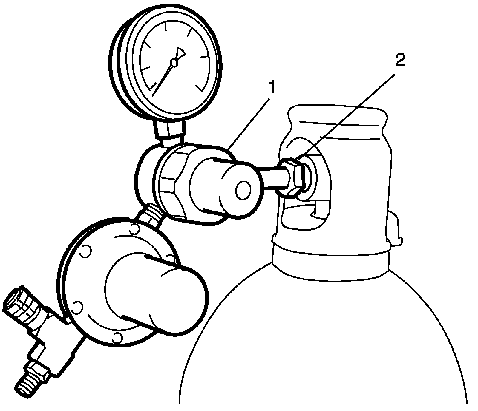 6. Install the pressure regulator (1) to the nitrogen tank.