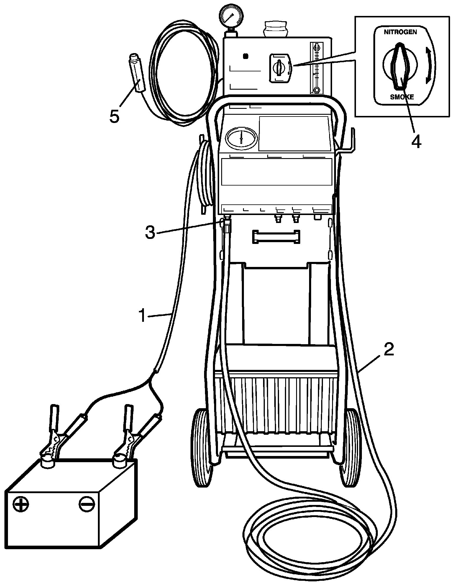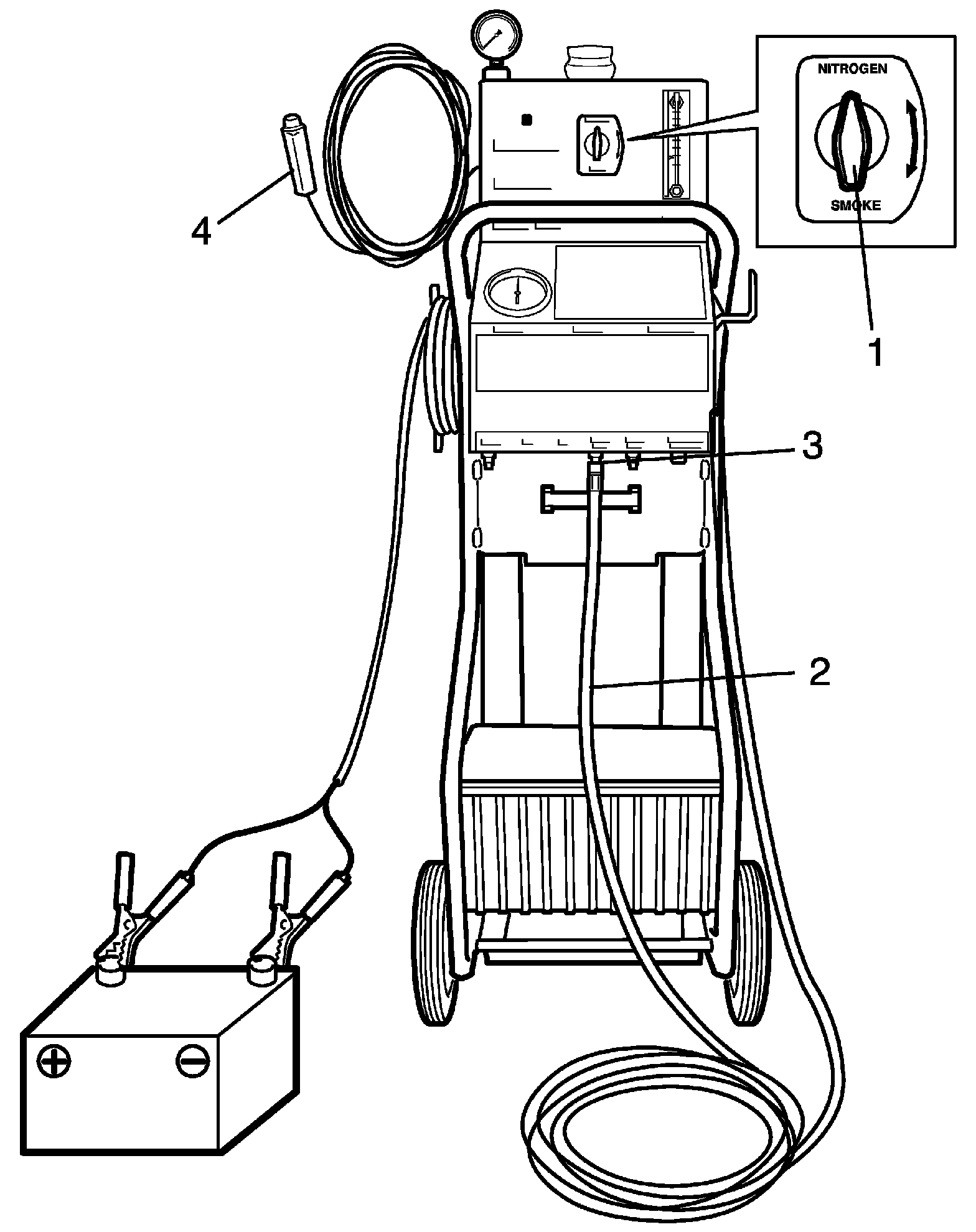 NOTE: Unwind the nitrogen/smoke hose completely from the bracket to optimize the tester's performance.